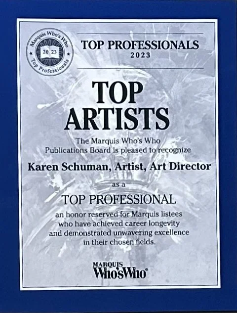 A prolific, award-winning artist, Karen Schuman founded the Dancing Krow Studio in 1996, a recognized gallery and studio space in Oak Park, Illinois, that hosts many celebrated multimedia artists and creators.